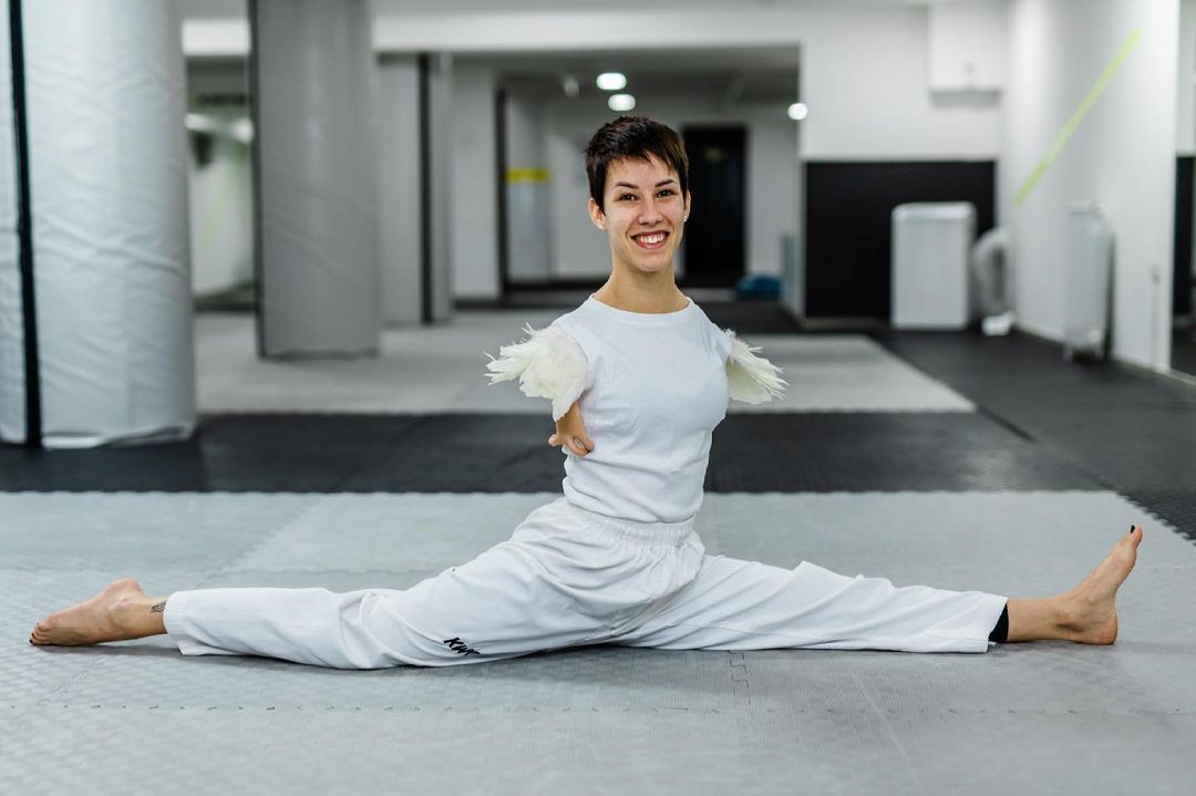 Pored toga ona se bavi tekvondoom i može sve tehnike da radi nogama.